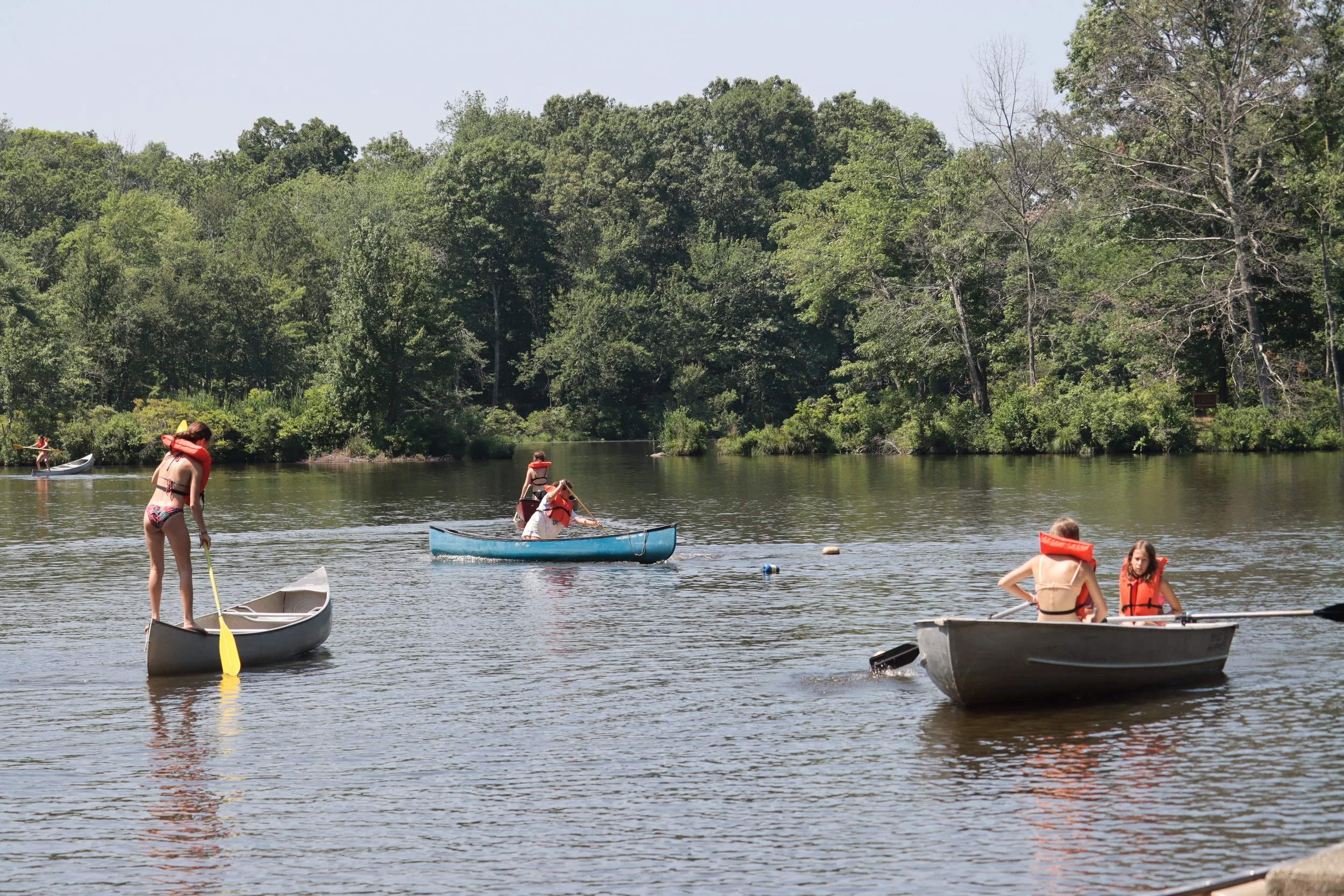 Learn to paddle a canoe, row a boat, kayak or paddleboard around the lake! Take a friend or go it alone!Instruction from counselors teaches new boaters how to Indian paddle, swamp, and tie a boating knot. If you are already seaworthy, you can enjoy the peacefulness of a quiet paddle.All boaters wear a PFD at all times.